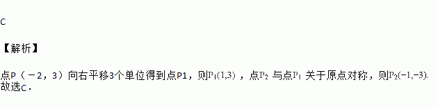 将点P(-2,3)向右平移3个单位得到点P1,点P2与点P1关于原点对称,则P2的坐标是( )