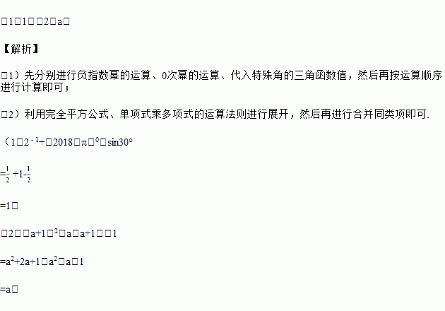 (1)计算:2﹣1+(2018﹣π)0﹣sin30°;(2)化简:(a+1)2﹣a(a+1)﹣1.