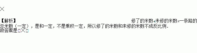 一条路,修了的米数和未修的米数成反比例。( )