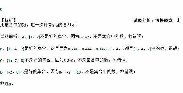 把几个数用大括号围起来,中间用逗号断开,如:{1,2,3}、{﹣2,7,8,19},我们称之为集合,其中的数称其为集合的元素.如果一个集合满足:当实数a是集合的元素时,实数8﹣a也必是这个集合的元素,这样的集合我们称为好的集合.下列集合为好的集合的是( )