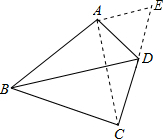 分析:延长CD至E,使DE=DA.连接AC,AE,由∠ADC=120°得到∠ADE=60°,又AD=DE,可判断△EAD是等边三角形,则AE=AD,∠DAE=60°,再根据AB=AC,∠ABC=60°可△ABC为等边三角形,则AB=AC,∠BAC=60°,易证∠BAD=∠CAE,然后根据“SAS”判断△BAD≌△CAE,根据全等的性质得CE=BD,利用CE=CD+DE,DA=DE,即可得到AD+CD=BD.