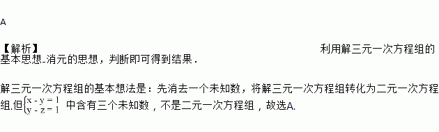 对于三元一次方程组,我们一般是先消去一个未知数,转化为二元一次方程组求解。那么在解三元一次方程组时,下列没有实现这一转化的是( )