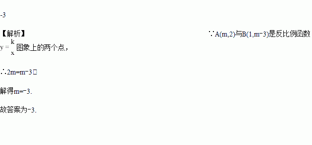 已知A(m,2)与B(1,m﹣3)是反比例函数图象上的两个点,则k的值为______.
