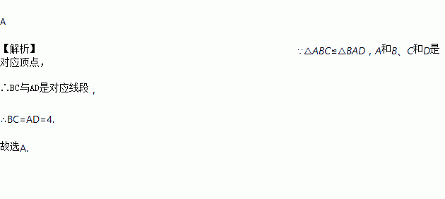 如图,△ABC≌△BAD,A和B、C和D是对应顶点,如果AB=5,BD=6,AD=4,那么BC等于( )