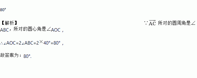 如图,点A,B,C在⊙O上,若∠ABC=40°,则∠AOC的度数为 _________ .