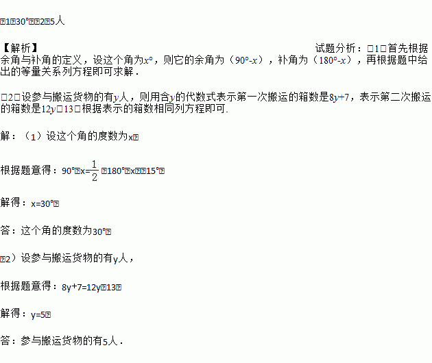 (2)几个人共同搬运一批货物,如果每人搬运8箱货物,则剩下7箱货物未搬运;如果每人搬运12箱货物,则缺13箱货物,求参与搬运货物的人数.