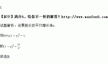 你知道吗?股票每天的涨、跌幅均不超过10%,即当涨了原价的10%后,便不能再涨,叫做涨停;当跌了原价的10%后,便不能再跌,叫做跌停.已知一支股票某天跌停,之后两天时间又涨回到原价,若这两天此股票股价的平均增长率为x,则x满足的方程是( )