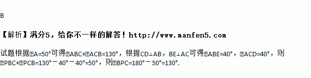 如图,在△ABC中,CD、BE分别是AB、AC边上的高,并且CD、BE交于点P,若∠A=50°,则∠BPC等于( )