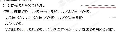 如图,AB为⊙O的直径,AC为⊙O的弦,AD平分∠BAC,交⊙O于点D,DE⊥AC,交AC的延长线于点E.