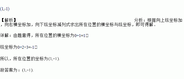 一只蚂蚁由(0,0)先向上爬2个单位长度,再向右爬1个单位长度,再向下爬3个单位长度,它所在位置的坐标是_________.