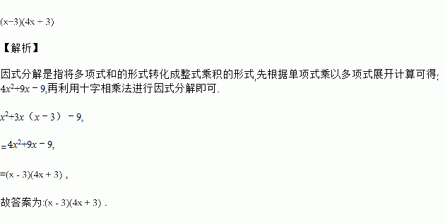 分解因式:x2+3x(x﹣3)﹣9=_____.
