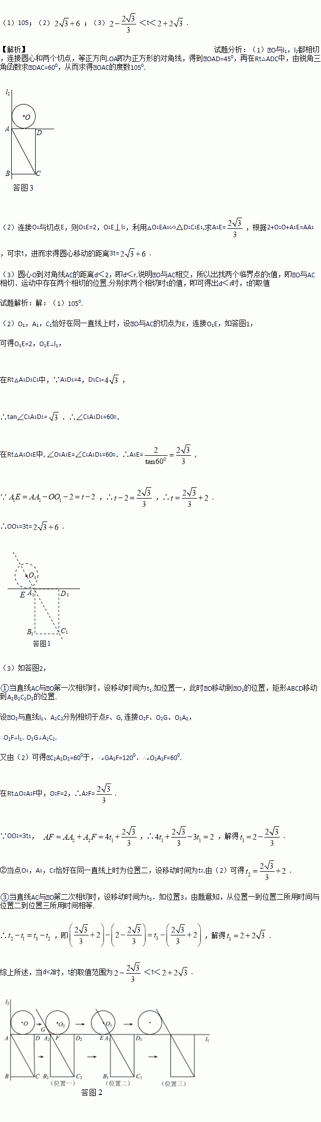 cm,AD=4cm.若⊙O与矩形ABCD沿l1同时向右移动,⊙O的移动速度为3cm/s,矩形ABCD的移动速度为4cm/s,设移动时间为t(s).
