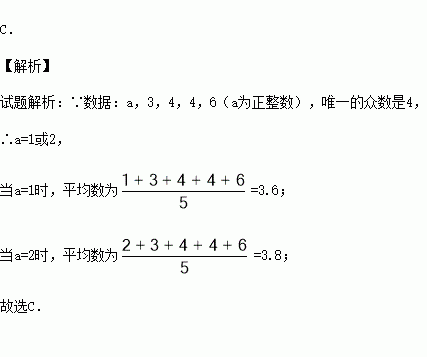 一组从小到大排列的数据:a,3,4,4,6(a为正整数),唯一的众数是4,则该组数据的平均数是( )