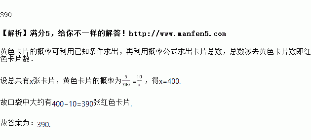 袋中有若干张红色和张黄色卡片,它们除颜色外完全相同.有放回地摸取次,其中有次摸到黄色卡片,则袋中大约有红色卡片________张.