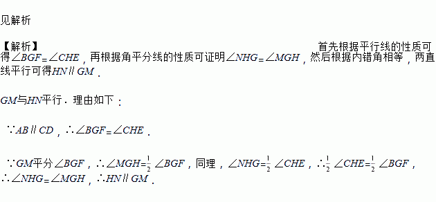 如图,,直线交、于点、.如果平分,平分,那么与平行吗?为什么?