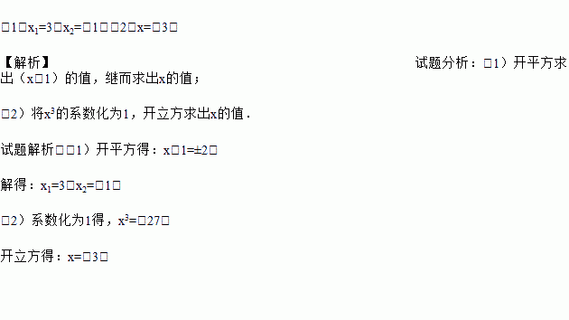 (1)(x﹣1)2=4