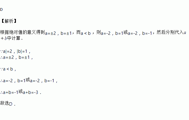 若|a|=2,|b|=1,且a<b,则a+b等于( )