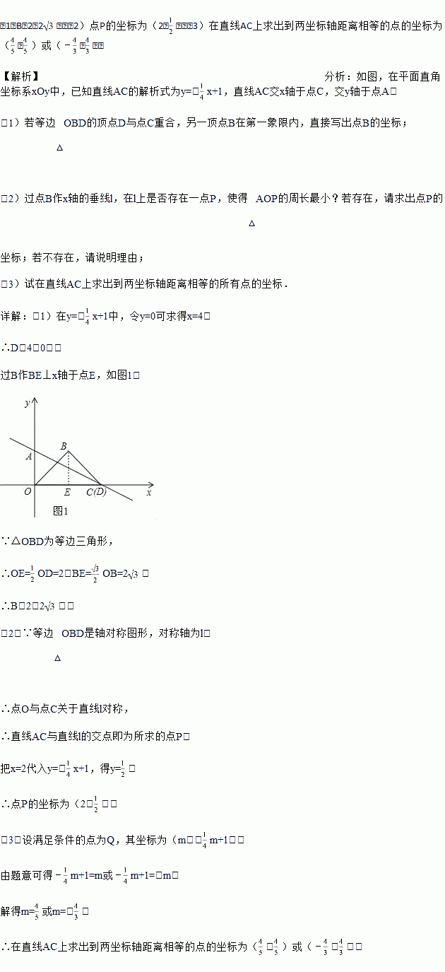 (3)试在直线AC上求出到两坐标轴距离相等的所有点的坐标.