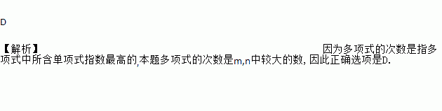 若m与n为正整数,则多项式xm+yn+2m+n的次数是( )