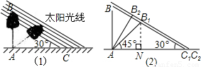 (2)①在△AB1C1中,已知AB1的长,即AB的长,∠B1AC1=45°,∠B1C1A=30°.过B1作AC1的垂线,在直角△AB1N中根据三角函数求得AN,BN;再在直角△B1NC1中,根据三角函数求得NC1的长.即可求解;