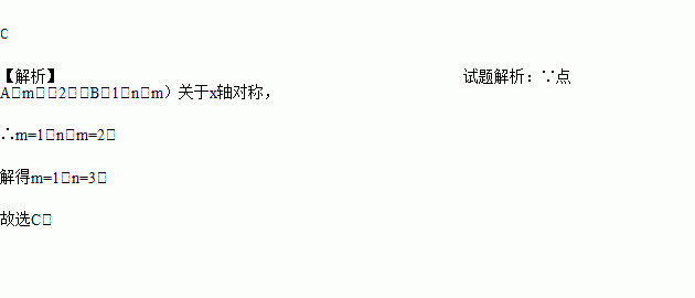 A. m=1,n=1 B. m=﹣1,n=1 C. m=1,n=3 D. m=1,n=﹣3