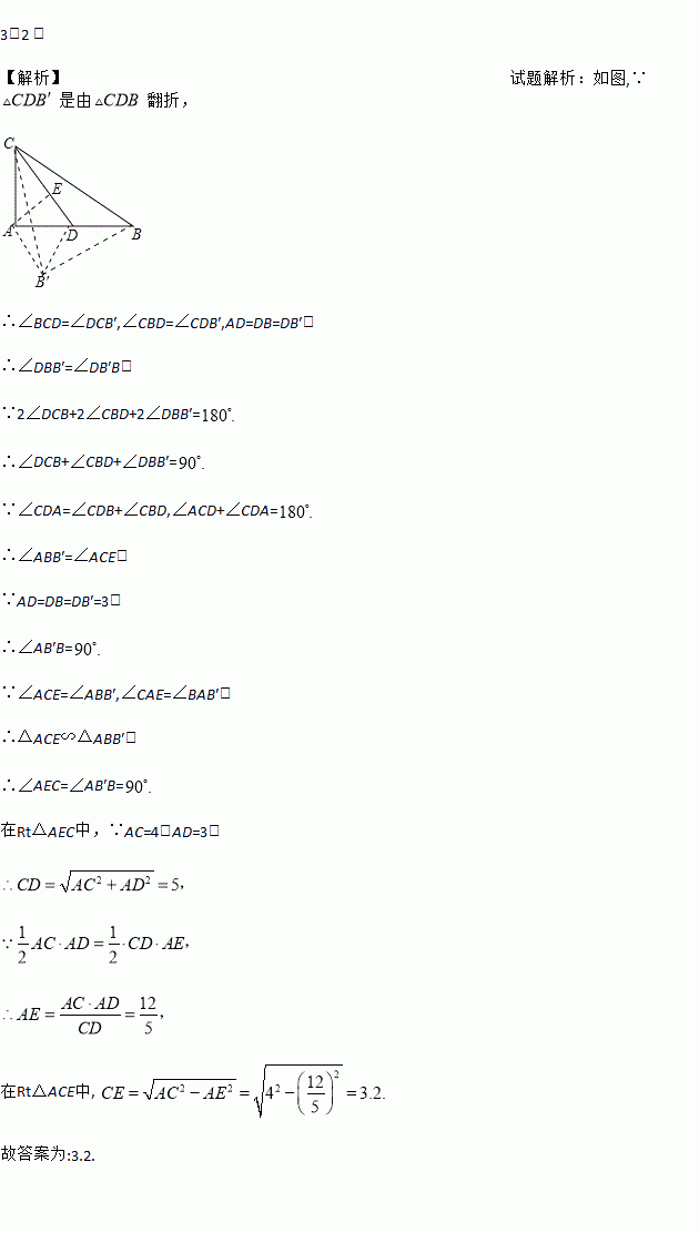 如图,在△ABC中,∠CAB=90°,AB=6,AC=4,CD是△ABC的中线,将△ABC沿直线CD翻折,点B′是点B的对应点,点E是线段CD上的点,如果∠CAE=∠BAB′,那么CE的长是__.