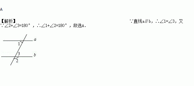 A. ∠1+∠2=180° B. ∠1+∠2=90° C. ∠1=∠2 D. 无法判断