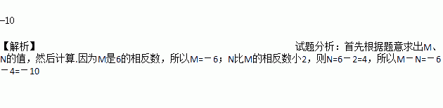 已知m是6的相反数,n比m的相反数小2,则m-n=_______.