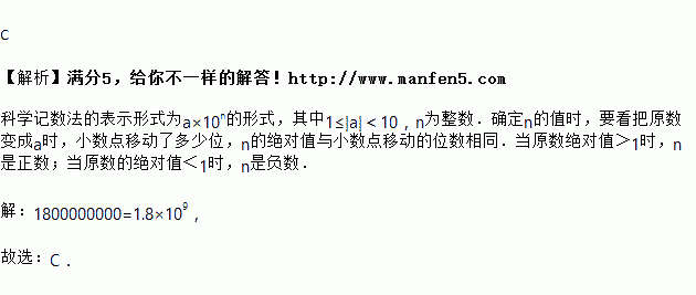 A. 18×108 B. 1.8×108 C. 1.8×109 D. 0.18×1010