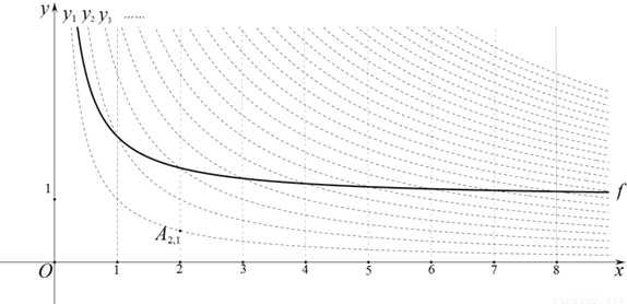 图中的曲线f是双曲线的一条“派生曲线”,且经过点,则f的解析式为______;
