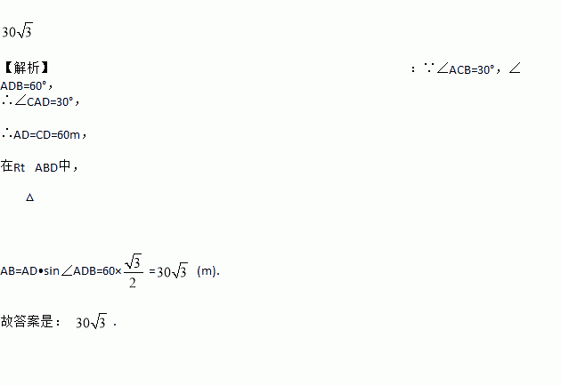 如图,为了测量河宽假设河的两岸平行,测得,则河宽AB为______ 结果保留根号.