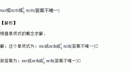 请写出一个系数含π,次数为3的单项式,它可以是________.