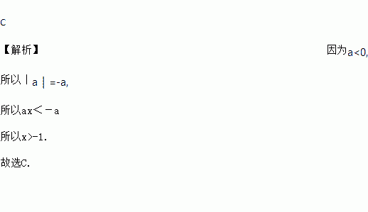 当a<0时,不等式ax<|a|的解集为( )