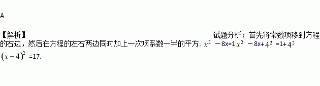 A. (x-4)2 =17 B. (x+4)2=15