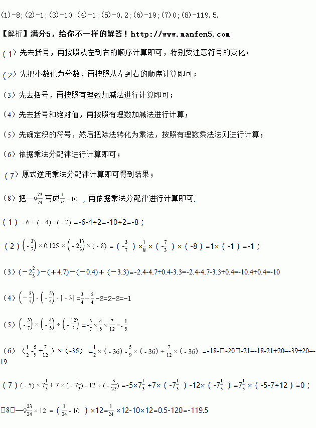 )-(+4.7)-(-0.4)+ (-3.3) (4)