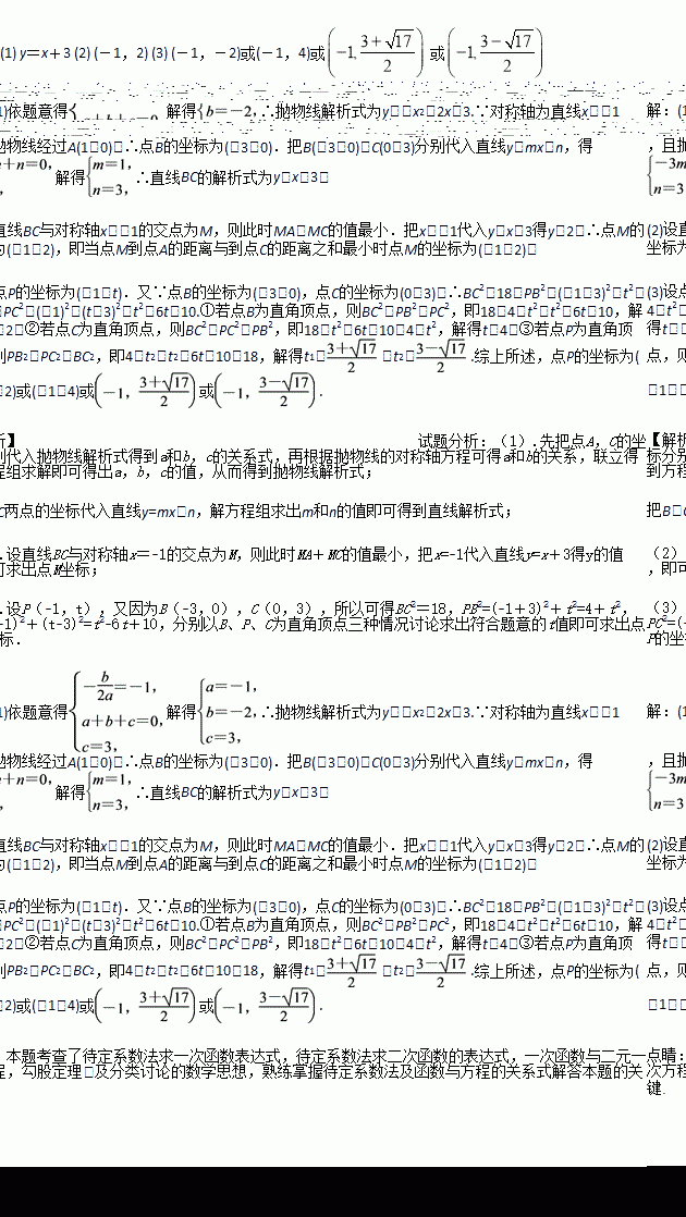 (3)设点P为抛物线的对称轴x=-1上的一个动点,求使△BPC为直角三角形时点P的坐标.