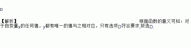 下列各图给出了变量x与y之间的对应关系,其中y是x的函数的是( )