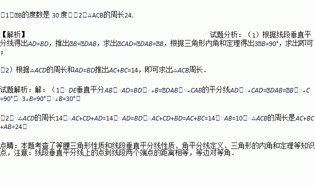(2)若AB=10,△ACD的周长为14,求△ACB的周长.