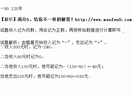 某工厂有一种秘密的记帐方式.当他们收入300元时,记为-240元;当他们用去300元时,记为360元.猜一猜当他们用去100元时,可能记为多少元?当他们收入100元时,可能记为多少元?说说你的理由.