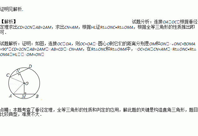 如图, 和分别是⊙上的两条弦,圆心到它们的距离分别是和.如果,求证: .