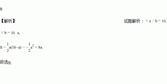 在Rt△ABC中,∠C=90°,BC=a,AC=b,a+b=16,则Rt△ABC的面积S关于边长a的函数关系式为( ).