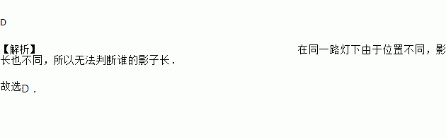 在同一时刻的太阳光下,小刚的影子比小红的影子长,那么,在晚上同一路灯下( )