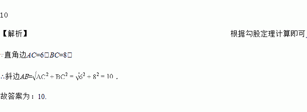 在Rt△ABC中,直角边AC=6,BC=8,则斜边AB等于________.