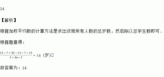 某校九年级甲班 40 名学生中,5 人 13 岁,30 人 14 岁,5 人 15 岁.则这个班级学生的平均年龄是___________.