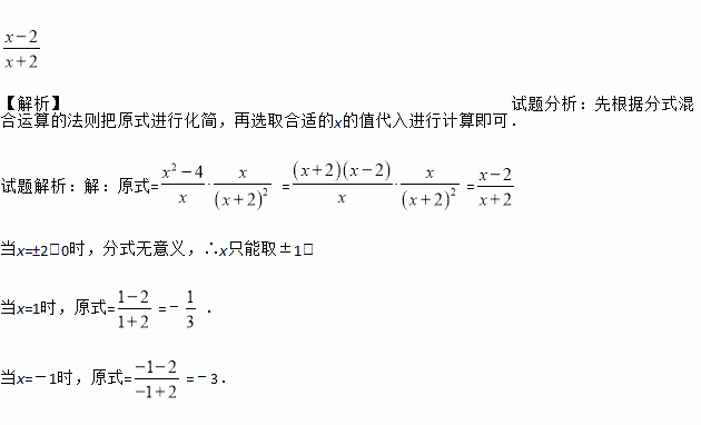 先化简(x-)÷, 若-2≤x≤2,请你选择一个恰当的x值(x是整数)代入求值.