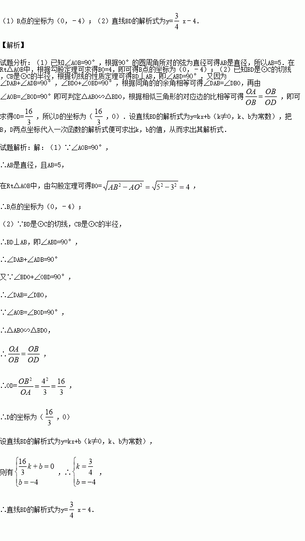 (2)过B点作⊙C的切线交x轴于点D,求直线BD的解析式.