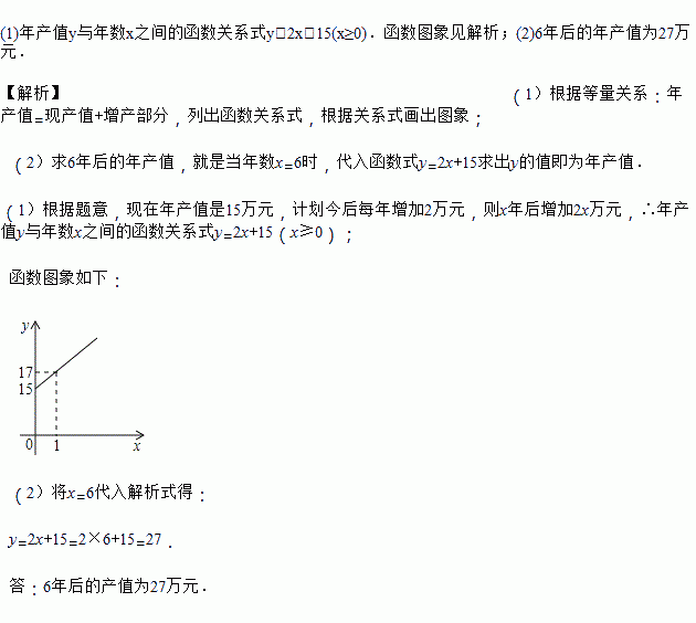(1)写出年产值y(万元)与年数x之间的函数表达式,并画出图象;