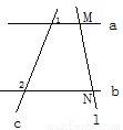 如图,直线a、b被c所截,a⊥l于M,b⊥l于N,∠1=66°,则∠2=________.