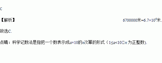 A. 6.7×108米 B. 6.7×107米 C. 6.7×106米 D. 6.7×105米