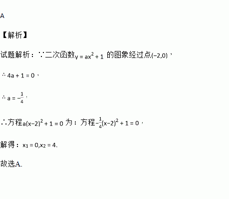 若二次函数y=ax2+1的图象经过点(﹣2,0),则关于x的方程a(x﹣2)2+1=0的实数根为( )